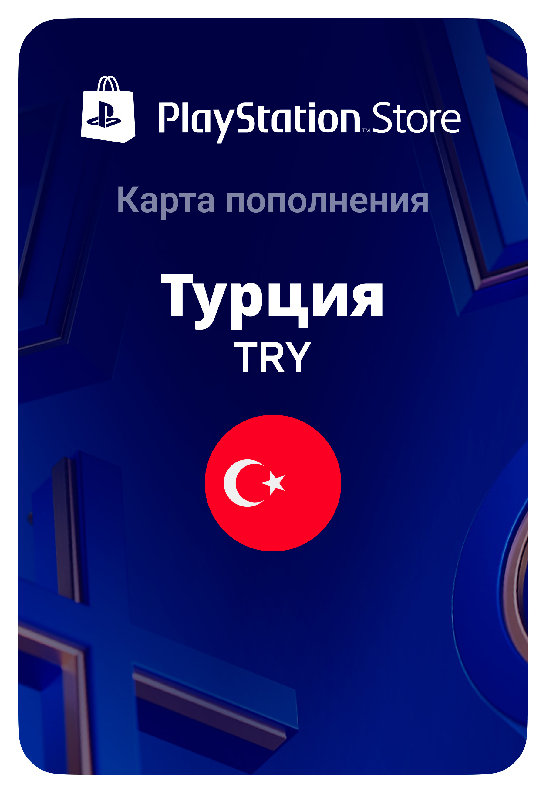 Kарта оплаты, позволяющая пополнить баланс для Турецкой версии аккаунта Playstation Network (PlayStation TR Store) Турецкие лиры.