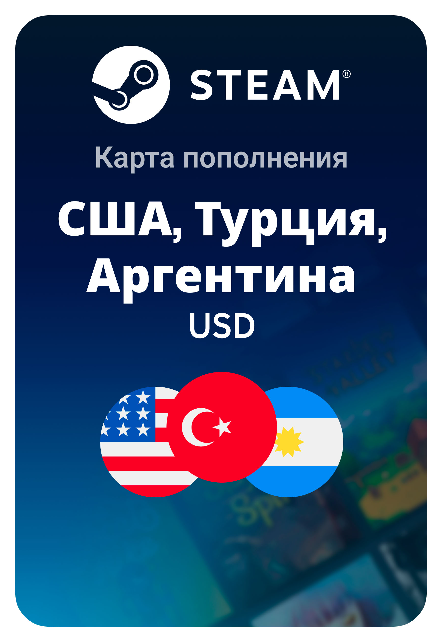 Карта пополнения Steam / Стим США, Турция, Аргентина 10 - 100 USD